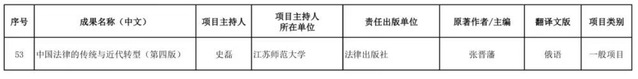 近日,全国哲学社会科学工作办公室公布2025年度国家社科基金中华学术外译项目立项名单,江苏师范大学江苏圣理工学院-中俄学院史磊副教授主持申报的《中国法律的传统与近代转型》(第四版)成功入选。该项目将对中国政法大学张晋藩教授的该部学术力作进行俄文译介,助力这一代表中国法学研究水准的成果融入国际主流知识传播体系。这是史磊副教授继2018年获得国家社科基金中华学术外译项目立项后,第二次斩获该国家级项目立项。